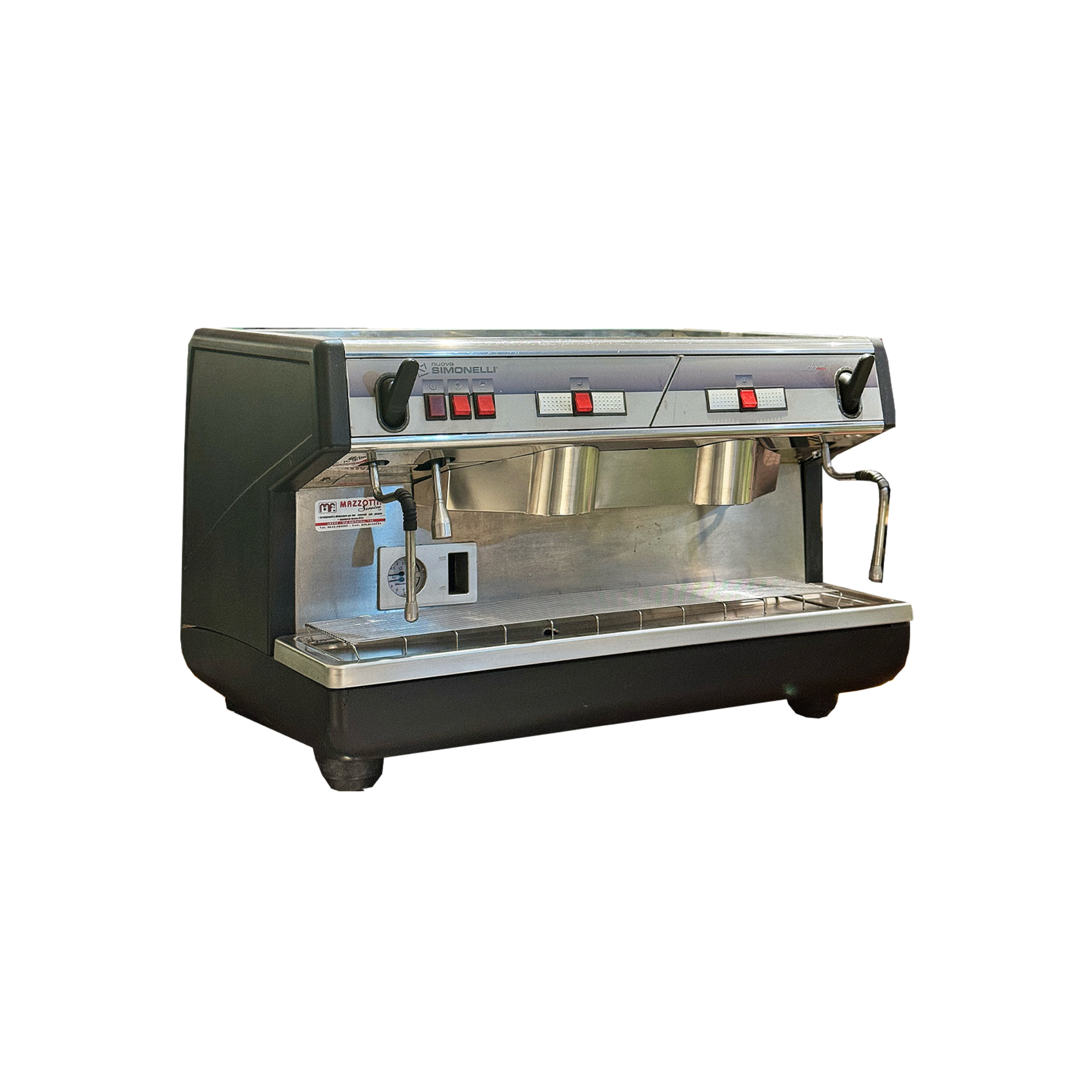 🔵 نیمه‌اتوماتیک واقعی اسپرسوساز صنعتی سیمونلی مدل APPIA ONE – دو گروپ – کنترل عصاره‌گیری دست باریستا